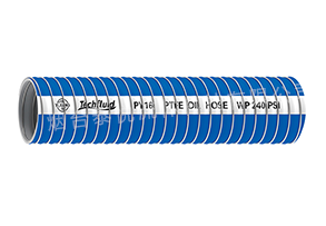 软管结构: 管壁有多层 POLYPROPYLENE 聚合物膜及合成纤维织物加强层构成,内外两层螺旋金属线缠绕,导静电设计,颜色蓝色。特殊要求可提供尼龙内层材料